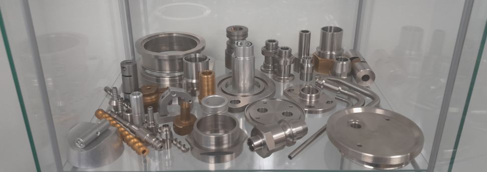We specialize in the manufacture of custom, small- and medium-series machined parts using conventional and CNC machine tools. Our CNC lathes are equipped with C-axis, sub-spindle and even Y-axis capabilities, enabling the production of complex parts in a single setup, combining turning operations with milling. Our CNC milling machine is equipped with a continuous-control indexing head/rotary table. In our toolmaking workshop, we naturally have conventional machine tools such as drilling machines, band saws, and other special-purpose machines, for example for tube bending.